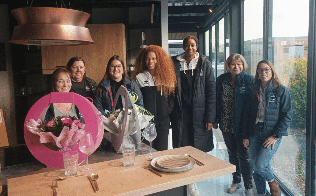 La semaine dernière, l’agence EDSI de Guipavas a vécu un moment particulier en accueillant deux figures emblématiques du Landerneau Bretagne Basket (LBB) : Harmoni Turner, meneuse (poste 1), et Adja Kane, intérieure (poste 4). Une rencontre placée sous le signe du partage, de l’échange et de l’engagement commun autour du sport féminin. Un partenariat fort entre EDSI et le Landerneau Bretagne Basket Ce temps de rencontre s’inscrit pleinement dans le cadre du partenariat entre EDSI et le Landerneau Bretagne Basket. Un partenariat qui va bien au-delà de la visibilité, et qui repose sur des valeurs fortes : engagement, performance, respect et esprit d’équipe. Comme dans le sport de haut niveau, le monde de l’entreprise demande rigueur, solidarité et persévérance. Des valeurs que partagent naturellement EDSI et le LBB. Cette visite a permis aux collaborateurs d’EDSI de vivre un moment privilégié, en accueillant deux sportives professionnelles au sein même de leur environnement de travail. Les joueuses ont ainsi pu découvrir les locaux, l’organisation de l’agence et le quotidien des équipes EDSI, offrant un regard croisé entre le monde du sport et celui du BTP. Harmoni Turner, meneuse dynamique, et Adja Kane, intérieure puissante, incarnent parfaitement l’exigence et la détermination du haut niveau. Les échanges ont été nombreux, sincères et inspirants, permettant à chacun de partager son expérience, son parcours et sa vision du collectif. Cette rencontre a aussi été l’occasion de présenter les différents services et métiers d’EDSI, souvent méconnus du grand public. Les équipes ont pu mettre en avant leurs compétences, leur expertise et la diversité des métiers qui composent le groupe. Le BTP est un secteur en mutation, où la place des femmes prend de plus en plus d’importance. Cette rencontre a permis d’aborder ces enjeux avec authenticité. La présence des joueuses, associée aux collaboratrices d’EDSI, a permis de souligner l’importance de la mixité et de la diversité, aussi bien dans le sport que dans le monde professionnel. La visite s’est conclue par une séance photo, mettant en lumière les joueuses du LBB aux côtés des femmes du BTP. Un symbole fort, illustrant l’engagement d’EDSI en faveur de l’égalité, de la représentation et de la visibilité des femmes dans tous les secteurs. À travers ce partenariat, EDSI affirme son soutien au sport féminin et à la reconnaissance des performances des athlètes. Les parcours d’Harmoni Turner et d’Adja Kane sont une source d’inspiration, tant par leur engagement que par leur détermination. EDSI est fier de présenter Harmoni Turner lors de l’entrée des joueuses sur le terrain, un moment fort et symbolique. Ce temps fort incarne pleinement la relation de confiance et de soutien entre EDSI et le Landerneau Bretagne Basket. Tout au long de la visite, la convivialité était au rendez-vous, favorisant les discussions spontanées et les sourires partagés. Collaborateurs comme joueuses ont salué la richesse de ces échanges, qui resteront un très bon souvenir. EDSI remercie chaleureusement David Le Goff pour l’organisation de cette visite et la coordination de ce moment. Un grand merci également aux équipes EDSI et aux joueuses pour leur disponibilité et leur implication. Cette rencontre entre EDSI Guipavas et les joueuses du Landerneau Bretagne Basket illustre parfaitement l’engagement du groupe en faveur du sport féminin, de la mixité et du partage des valeurs. Un partenariat porteur de sens, qui s’inscrit dans une démarche durable et humaine.